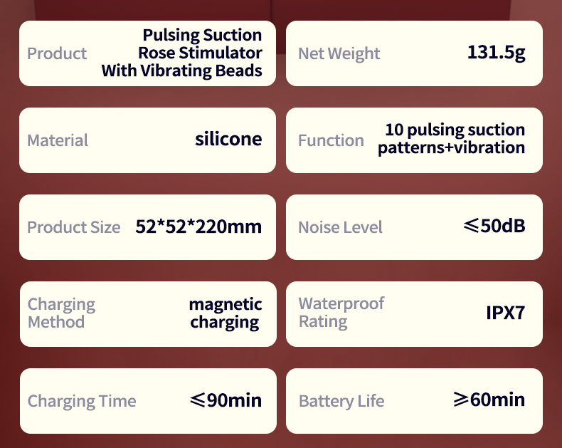 Intelligent Performance Configuration: Equipped with AI intelligent control system, it precisely adjusts 10-frequency wave suction + 10-frequency vibration modes, and freely switches the pleasure rhythm that fits the moment; Magnetic charging design, one-touch charging is more convenient, 90 minutes of full charge can enjoy 60 minutes of uninterrupted pleasure; Built-in 350mAh stable battery, long-lasting battery life for more peace of mind; IPX7 deep waterproof, you can indulge freely even when bathing; The operating noise is as low as 50dB, and the quiet experience is not disturbed.